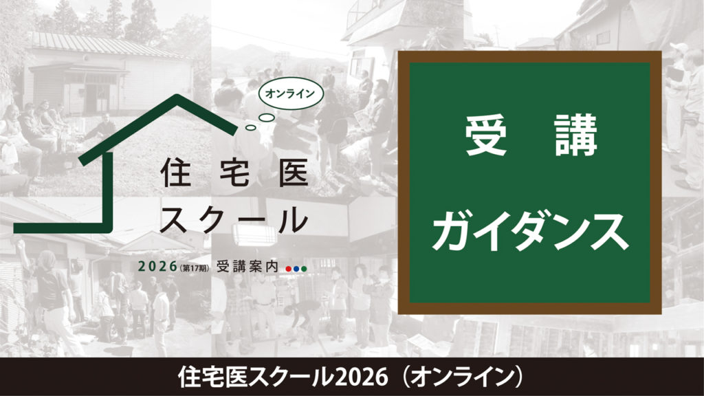 <住宅医スクール 2026受講ガイダンス> 昨年度、住宅医スクール 2026 の受講ガイダンスです。 住宅医スクール2026(オンライン)受講のルールから住宅医の認定までの流れを解説しています。 住宅医スクール 2026の講義を初めて受講される方は、受講前に必ず視聴してください。 住宅医スクール 2026(オンライン) 受講ガイダンス <18 分> ※上記のサムネイル画像をクリックすると、Youtube の動画が視聴できます。