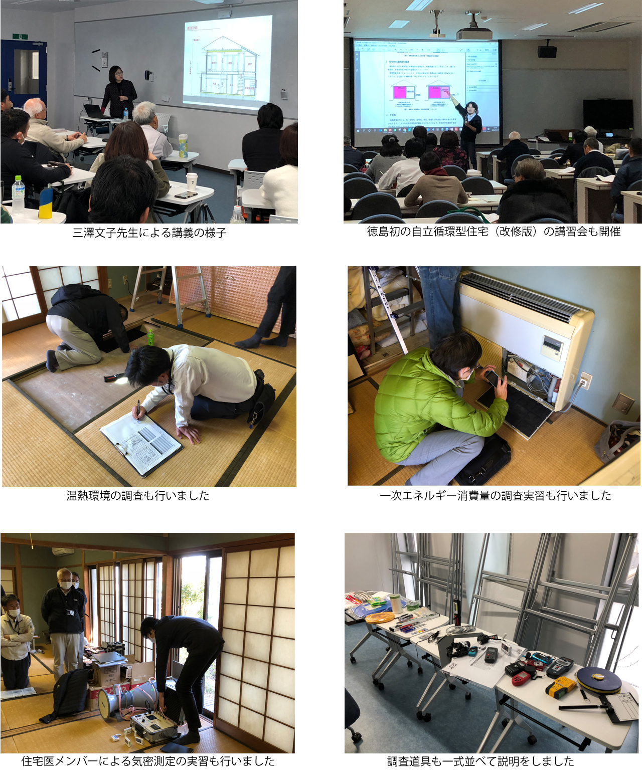 昨年度は建築技術教育普及センターの研究助成の採択をいただき、性能向上インスペクションに関する全国調査を実施させていただきました。住宅医協会の皆様には大変にお世話になりました。また、徳島県より社会人を対象とした性能向上インスペクション講座の助成を受け、三澤文子先生をはじめ住宅医スクールの先生方に徳島においでいただき講義をお願いしました。