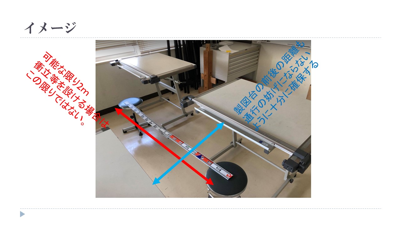 製図室の机を2m離した場合の説明