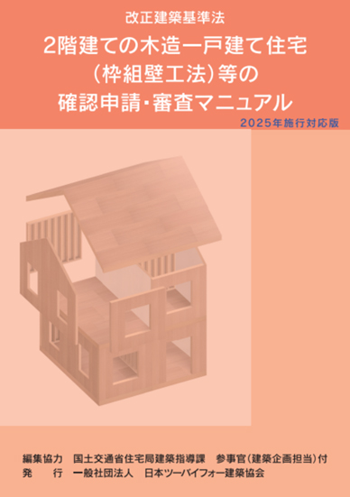悲観していても始まらないので、現状で「増築」に関する対応について、知り得ることを挙げていきます。まずは、「改正建築基準法―2階建ての木造一戸建て住宅(軸組構法)等の確認申請・審査マニュアル(2024年9月第2版)」とその枠組壁工法バージョン。