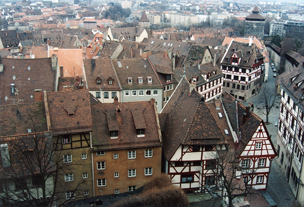 ■ニュールンベルグでは「瓦礫の原に新しい街をつくるか、それとも古いままに再建するか」を問う住民投票で「昔のまま」が圧倒的多数を占め、今も観光ガイドブックに誇り高く書かれています。その迷路のような街は日本人観光客に「古くて素敵な街」と言わせるのです。