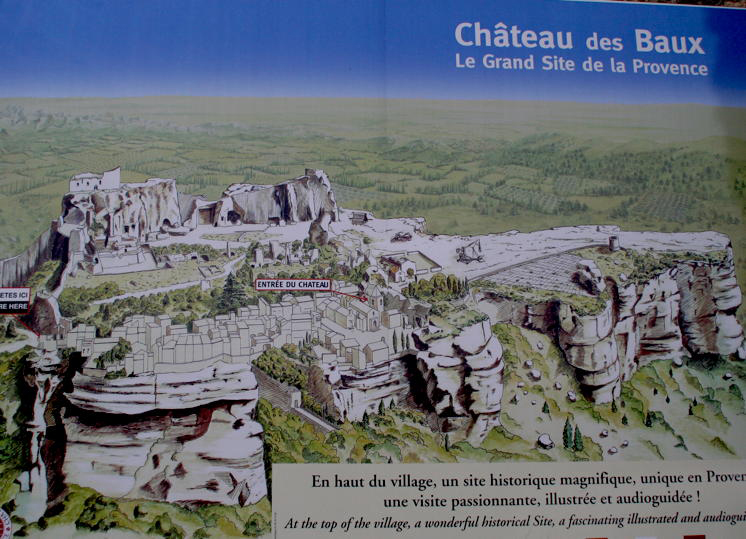■南仏にレ・ボー(Les Baux)という10世紀に始まる城塞都市があって、一番高い岩の上にお城がありました。城は既に崩れていますが、その周りに往事の雰囲気を残した家や店が残って観光名所となっています。