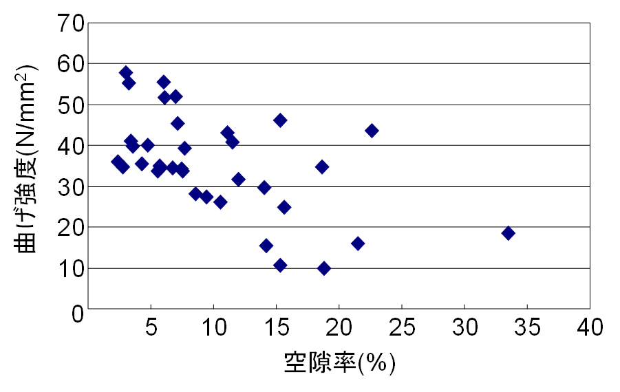 ![]() 図5 空隙率と曲げ強度の関係 |