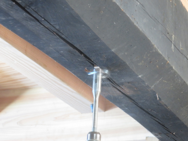また別の梁や土台の交わり方によってはドリフトピン 3 本をすべて打つことが出来ない場合が生じたのですが、ホゾ代用のせん断力は確保できるとのことで、そのまま使用することもできました。