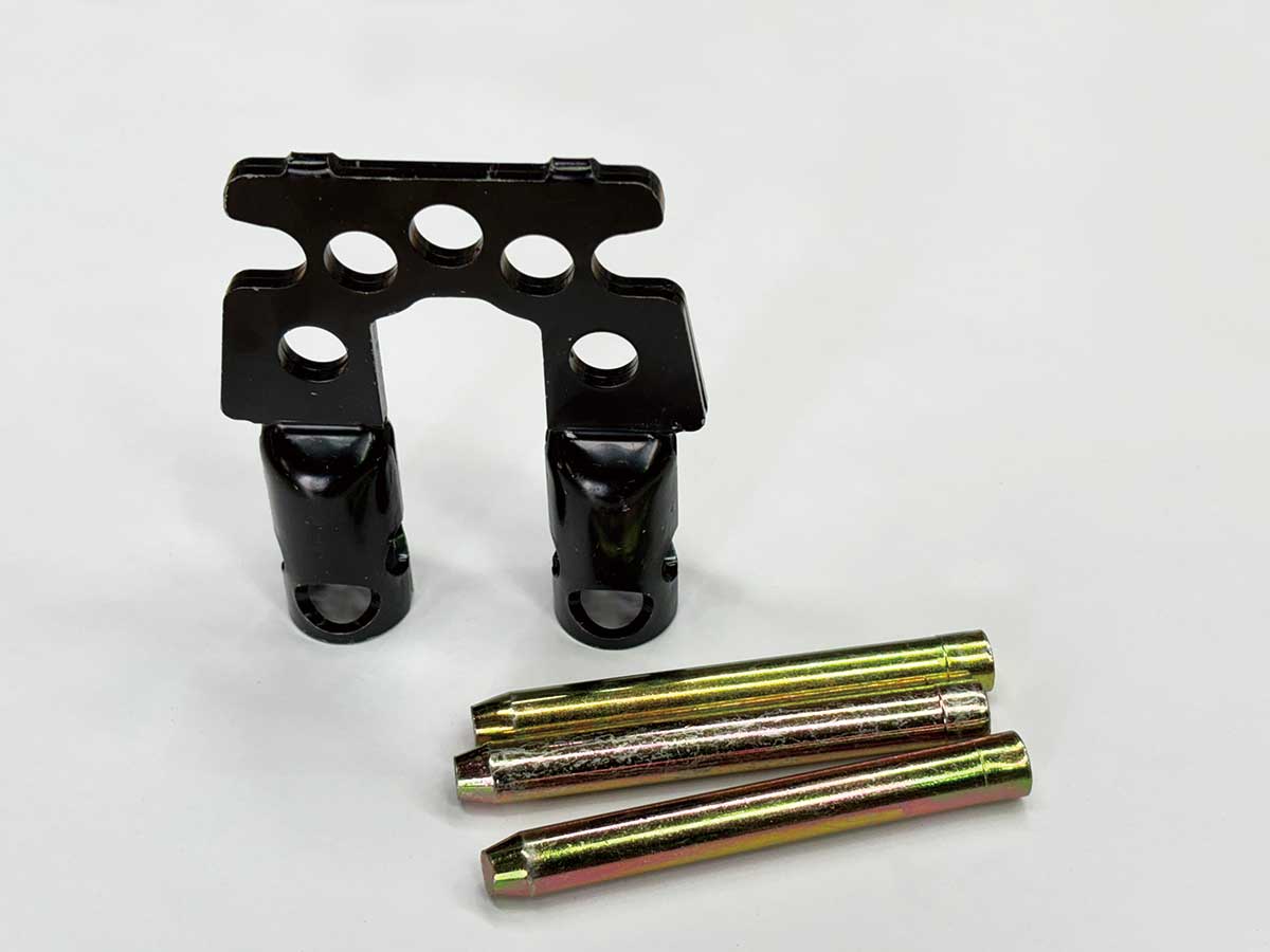 建築雑誌の広告で見かける「フロッキン狭小壁(柱芯 350 mmの耐力壁)」で使用される D 社の金物工法で用いるフロッキン金物。今回、D社からこのフロッキン金物でもホゾの代用可能と伺い、使用してみました。