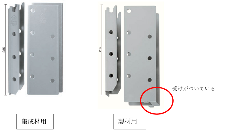 図 金物工法梁金物の集成材タイプと製材タイプの違い