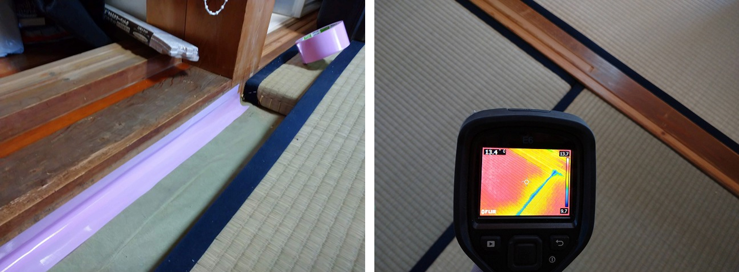 また、畳の厚み分だけ根太や大引が下がっているので、床框や畳寄せあたりから漏気が発生していることが多いです。