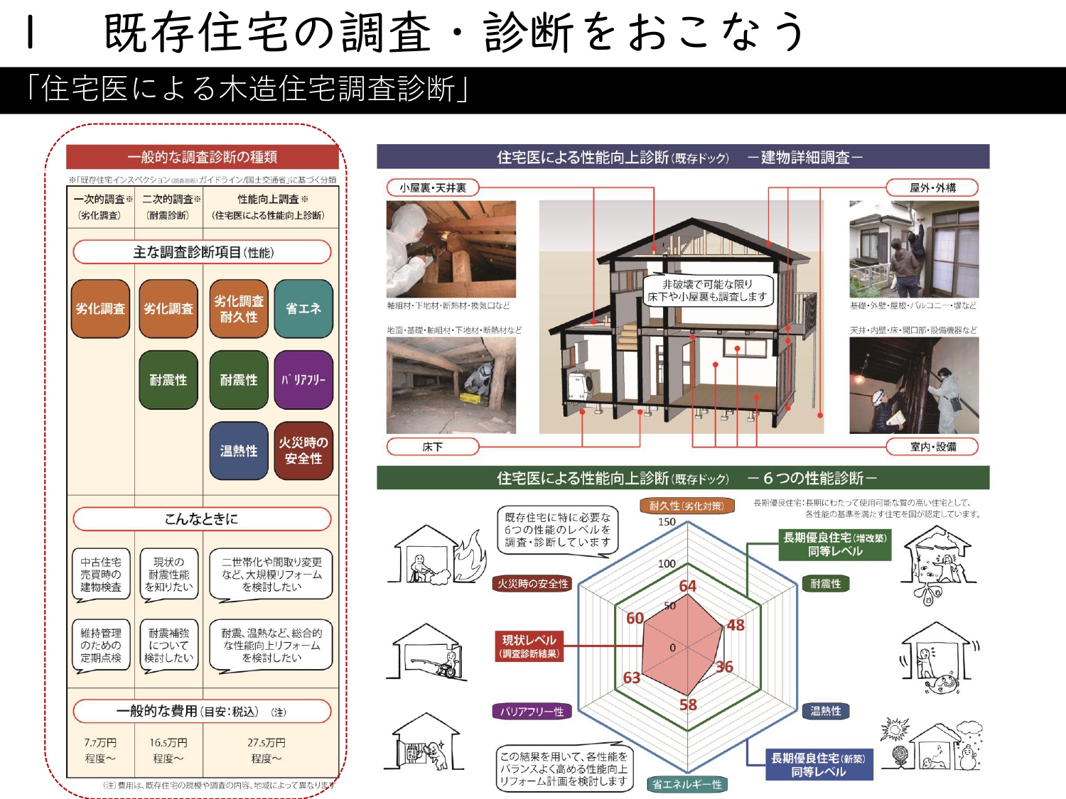 診断の方法については、各自方法論を持つことが理想でしょうが、まずは住宅医スクールで提供する診断方法を学んで実践してみてほしいと切に希望します。