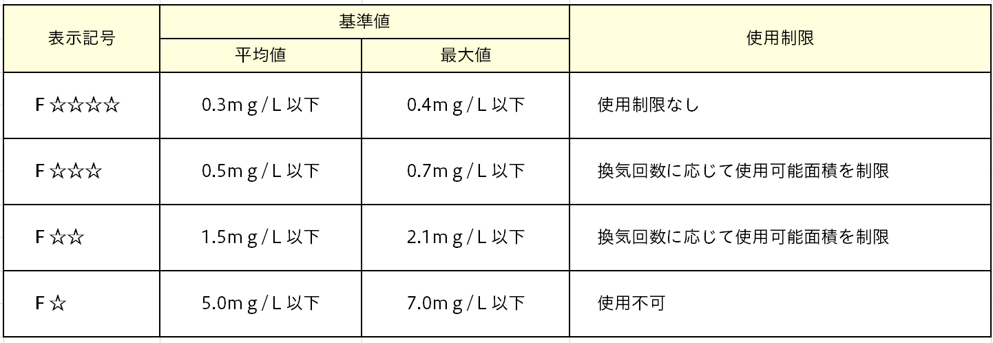 - ・現在一般的に住宅に使用されているF☆☆☆☆ の構造用合板は面積制限なく使用することができるため、ホルムアルデヒド放散の不安を払拭できない。