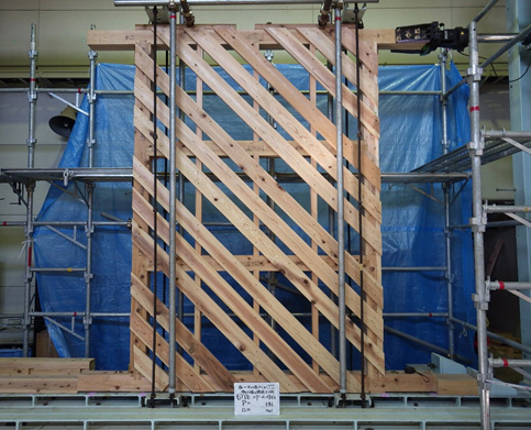 ■化学物質過敏症が注目される中で、接着剤を使用した構造用合板をまったく使用しないで住宅をつくれないかと思い立ったのが、今からほぼ 10年前の 2013年でした。このテーマに関心のある設計者や工務店に声をかけ、職業能力開発大学校の松留教授、構造設計者の山辺豊彦氏に指導をお願いして研究会を立ち上げました。原寸模型をつくってせん断破壊試験を繰り返し、開発費を 1,000万円以上かけて 3年後の 2016年に斜め張り工法の実用化にこぎつけました。