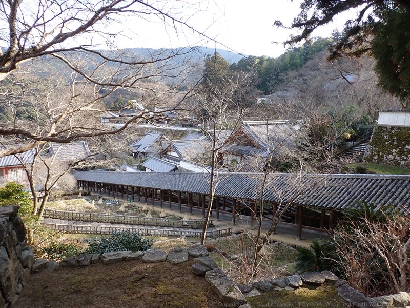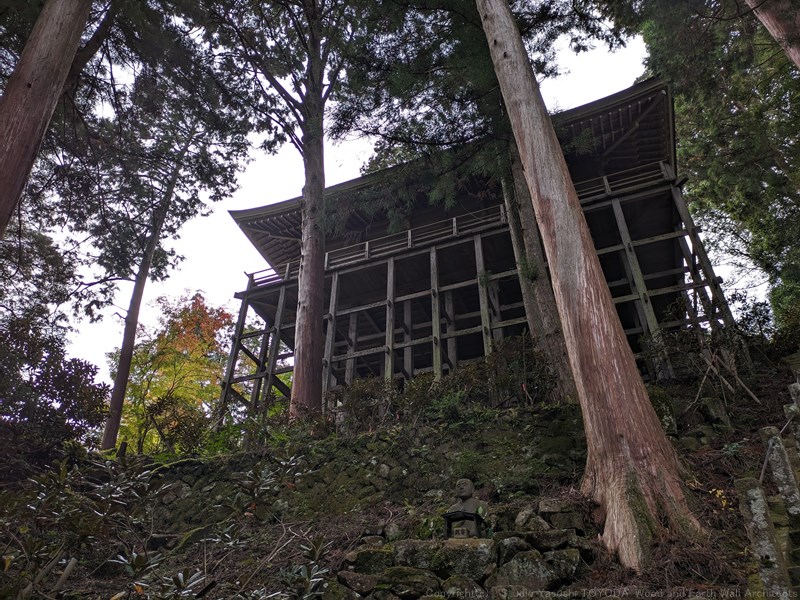 柱脚は玉石で、貫が段違いに入っています。山の頂上に建つ懸造りなので、痛みが激しいのかと思いましたが、400年以上も風雨にさらされていたと考えると、その底力は想像を超えるものがあります。