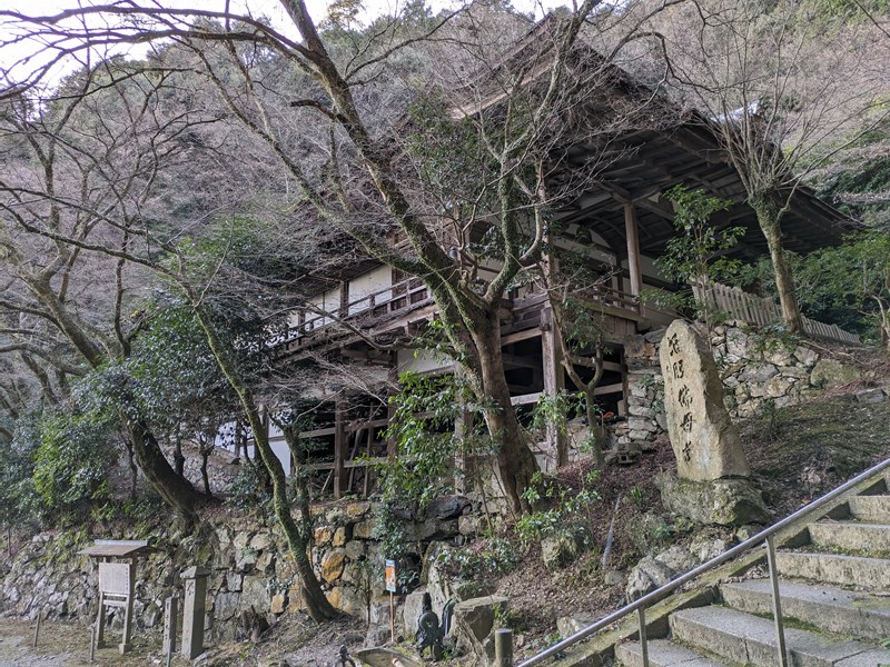重要文化財 如意輪堂 1606年再建。懸造りの建物前に樹木があるのとないのとでは印象が違います。樹木がないと風雨に晒されることになりますが、そのような状況を感じさせない、落ち着いた風貌をしています。
