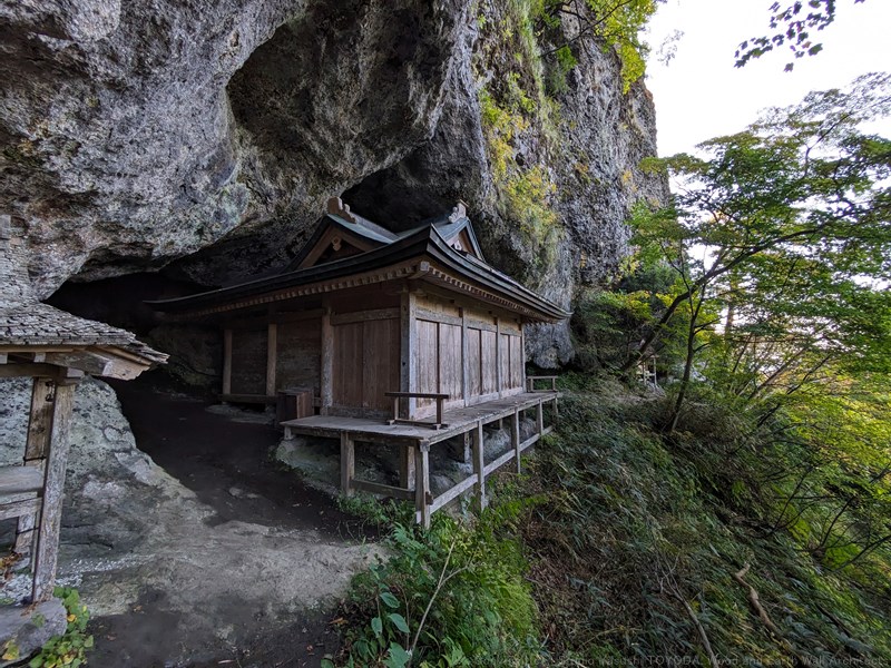 建物の裏を通って、投入堂へ進みます。この道は、胎内くぐりというらしいです。