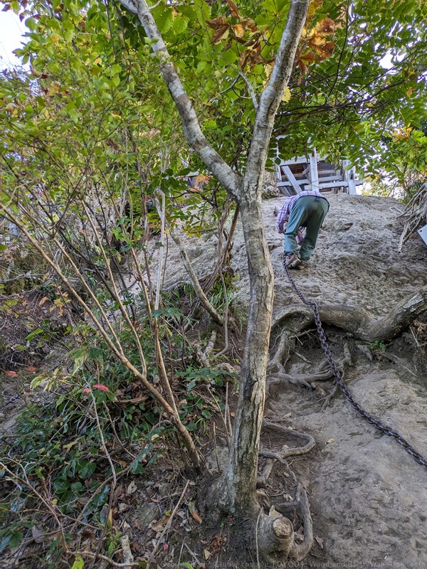 帰りも鎖を使って降りていきます。70代後半のご夫婦と一緒に下山しましたが、「そんなに早く降りたらもったいないよ、色々楽しみながら行こうよ」と声をかけていただきました。70歳を超えても平然と上り下りする様をみて、びっくりしたものの、登山の楽しみを教えてもらえた下山路でした。