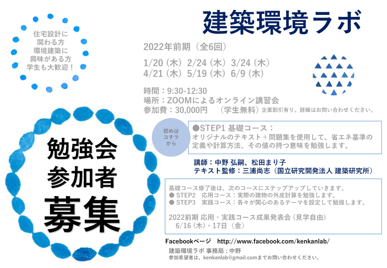 お申込みは、チラシのメールアドレス(建築環境ラボ 中野さんへ)
