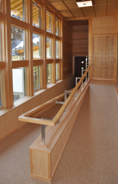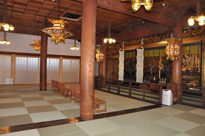 ■報告書をもとに改修設計を終え、本堂の改修工事は2011年4月から2014年1月、屋根の吹き替えを10年前にしたばかりなので屋根はそのままで、梁から基礎までの耐震改修と断熱改修、バリアフリー化、小屋裏の補強をしました。工事期間の1年間は仏具業者による内陣装飾工事に費やされました。庫裏からのバリアフリー化を行ったスロープ廊下はかなり好評です。