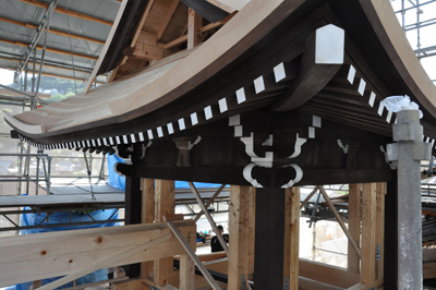 ■その後、鼓楼玄関棟の改修工事が2016年11月から2017年12月で、古い部材は使わず基礎からの全面改修となり、断熱改修とバリアフリー化も行いました。福善寺門信徒の棟梁が唐破風や鼓楼小屋組み組物を手刻みで仕上げました。