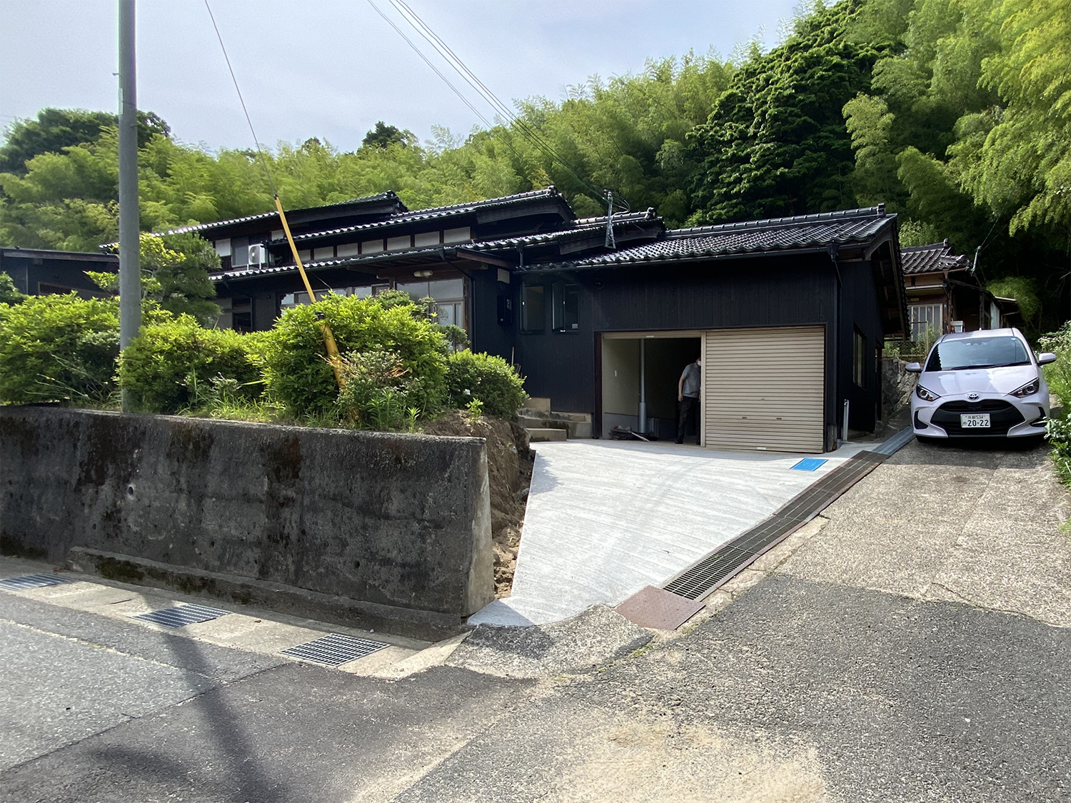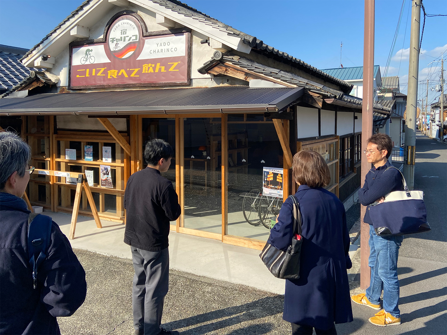 民家が地域での在宅を支援する施設となる。桁行方向に増築されており、もともとの釉薬瓦の美しい屋根が町並みに馴染んでいる。