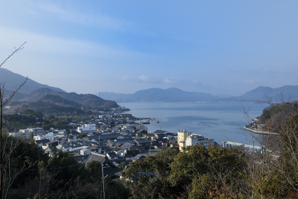 ① 瀬戸田町全景 ( 敷地は瀬戸内海の生口島.しまなみ海道沿いにある人口約8000人の港町 )