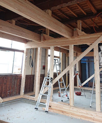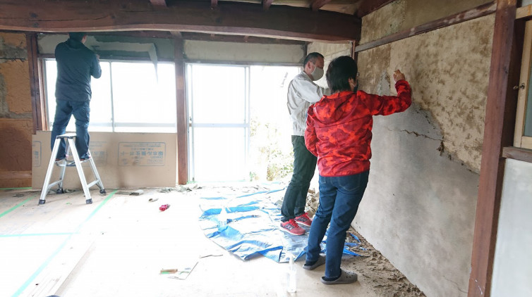 それでも、地域の大工さんをはじめとする建築仲間たちの力を借り、多くの方々のご協力のもとで、片付けやDIYによる仕上げ工事を進めていきました。