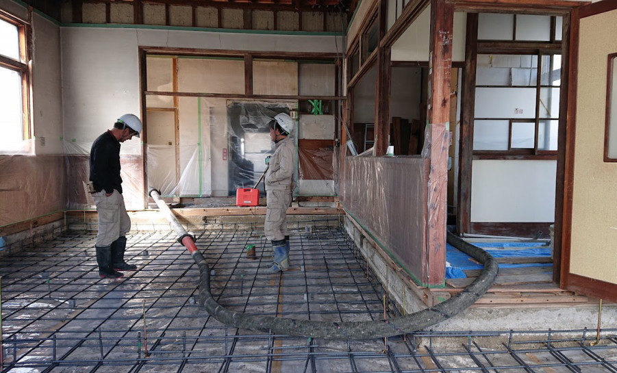 ![]() 1階 教室の床撤去後 建物内側に基礎をつくる |