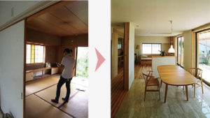 充填して、外部の窓をペアガラスにする温熱改修工事を行いました。