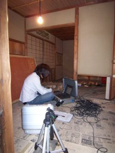 ↑詳細調査の様子。常時微動測定(左),床下調査(右)