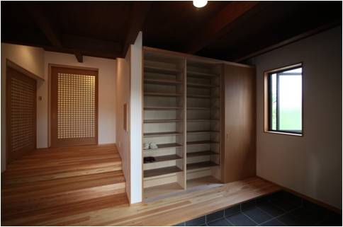 以前は、田の字の和室が玄関で分断されていましたが、玄関の位置を