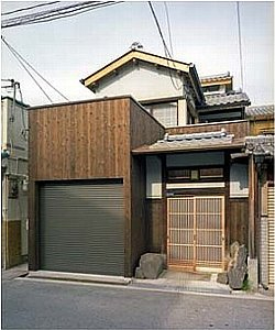 外観は門を保存し、アルミサッシは木製建具に戻し、ガレージ、ベランダは目立たぬよう色のトーンを落とし板張りの壁で囲いました。
