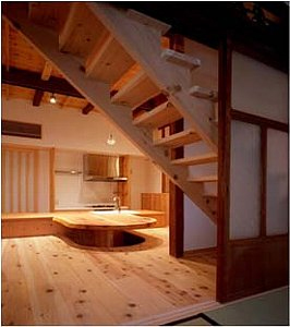 水周りは方々に散在し、1階は寒くて陰鬱で生活できず、玄関脇で作った料理をガレージに出て2階に運び、食事をしているような状況で、台所で作ったものがすぐ食卓に出せるようにという「普通の生活」が第一の要求であった。