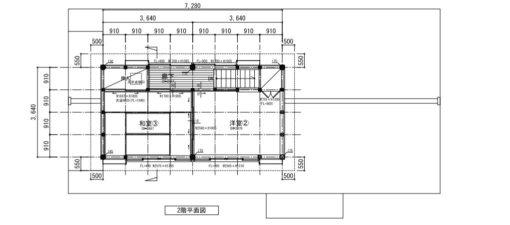 2階に関しては将来的な個室化への対応を考慮しつつ、最低限の整備にとどめています。