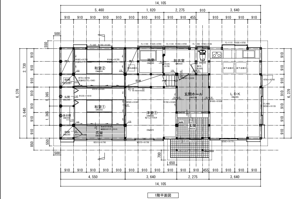 既存で火打梁が施工されていましたが、火打梁の床倍率は低いのと、有効性が不透明だったため全て撤去しています。