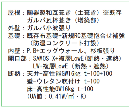断熱性能はUA値2.91W/㎡・K → UA値0.41W/㎡・K(HEAT20 G2レベル:0.46W/㎡・K)