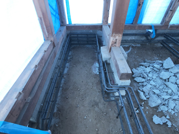 基礎補強に関しては構造設計事務所より既存基礎+新規ベタ基礎抱合せでの対応を提案されましたが、コストバランスを考え既存基礎+新規布基礎抱合せでの補強(+防湿コンクリート)を採用しています。