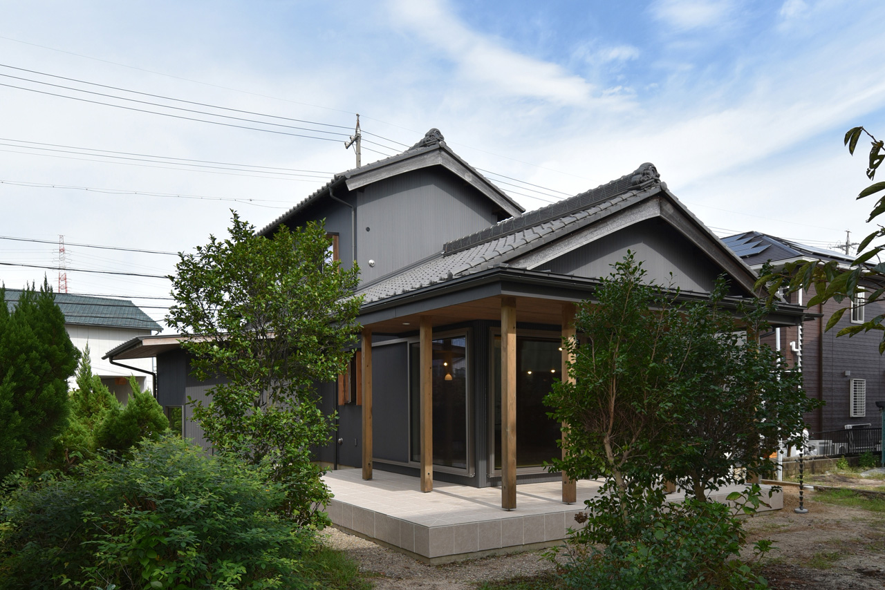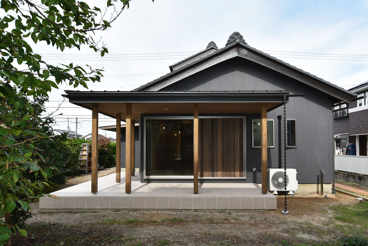 外観は板金張りになった以外は大きく変わっていませんが、増築された玄関、テラスが変化をもたらしています。