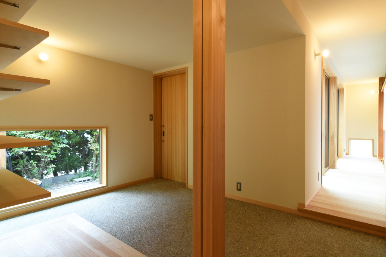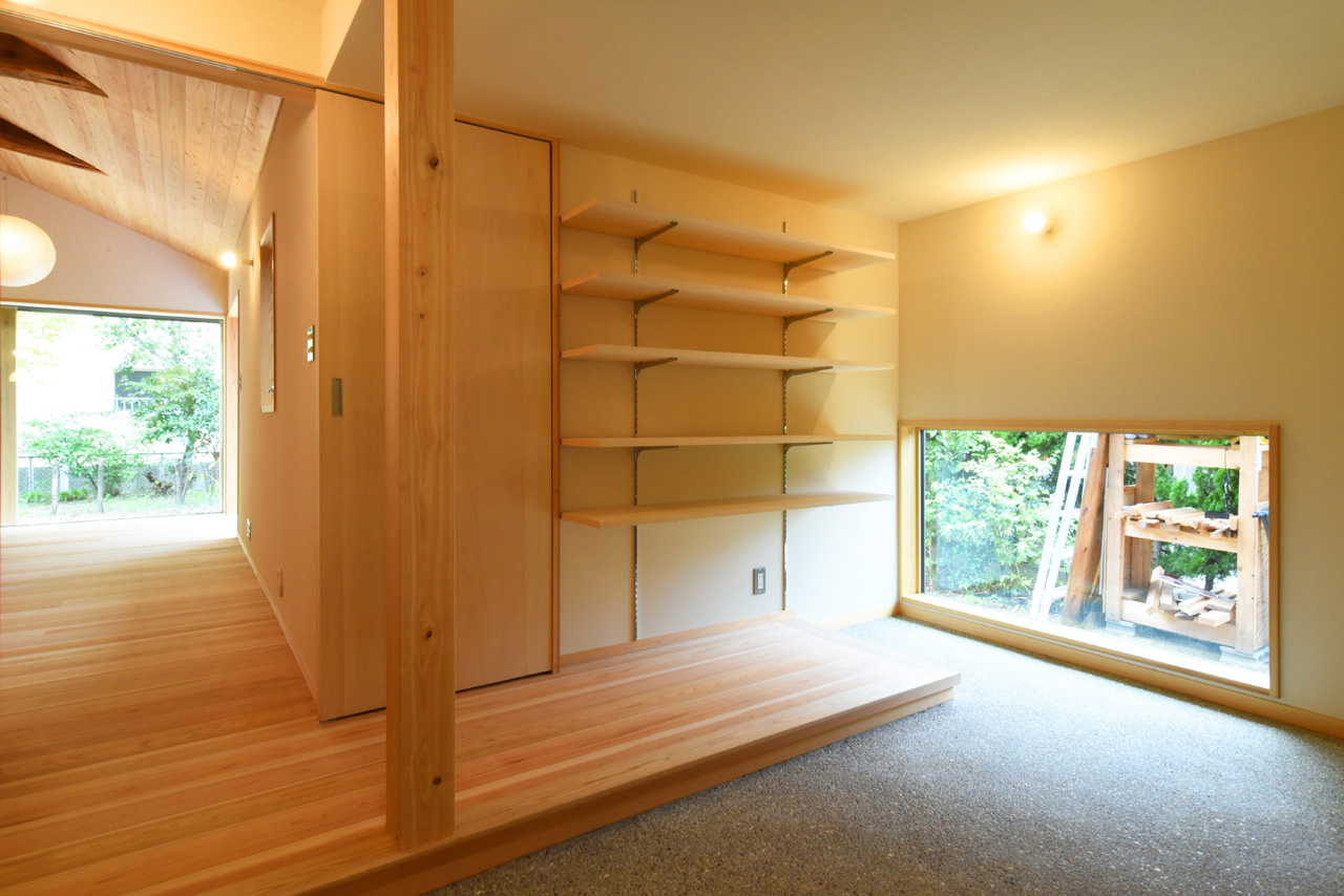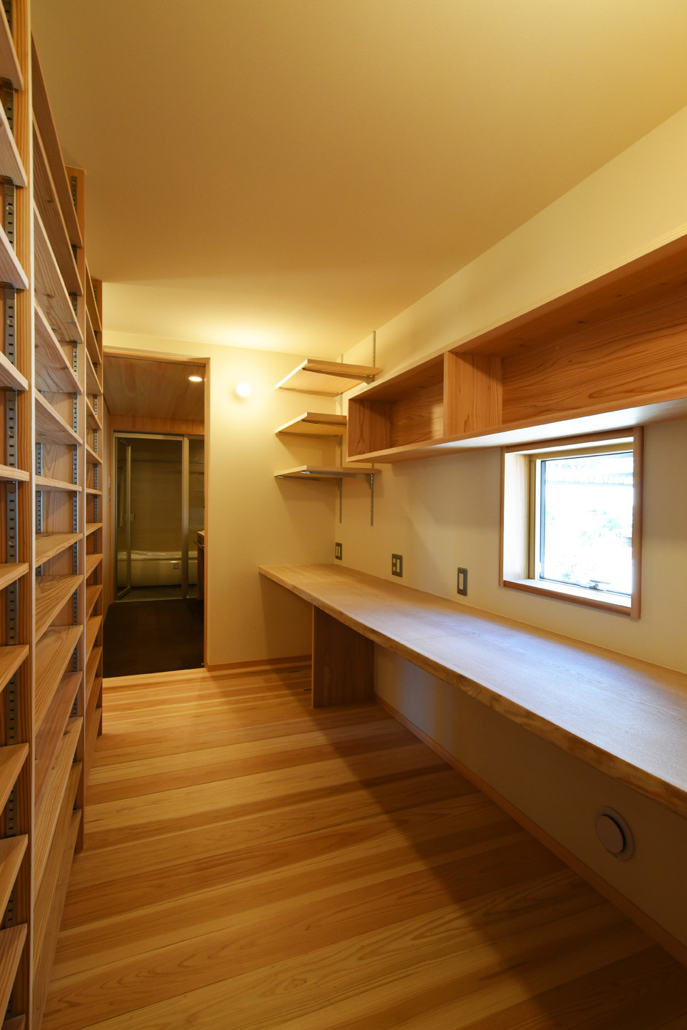 このご時世、ご夫婦の在宅ワークにフル稼働となるスペースです。またお子さんが小さいうちはリビングスタディとともに有用な場所となるかと思います。