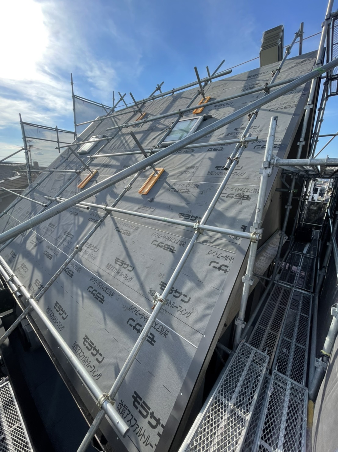 今回は野地板は残したままであり、現場の状況からも断熱補強はできませんでしたが、通気層をつくって防水性や室内の温度環境が良くなるよう計画しました。