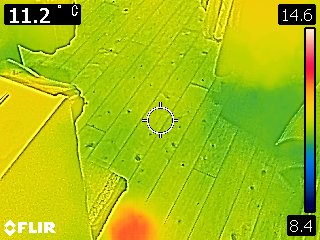 ![]() ↑既存天井(無断熱) 12.7℃ |