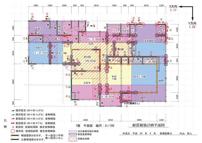 耐震診断の結果より耐震補強の計画を立て見積もりを行うと全体の補強費用は650万必要であることがわかりました。計画書と共にそのことをお客様に伝えると、そこまで費用を掛けられない、とのことで全体補強計画は一旦据え置き、改修の糸口が見えないまま一旦計画は見送りに。。。