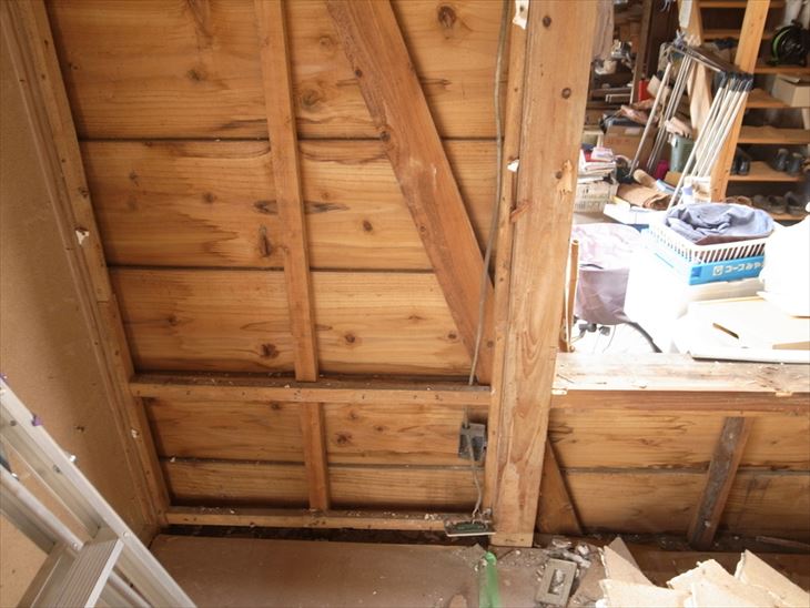 一方、屋根及び天井面共に断熱材は一切なしの現況。