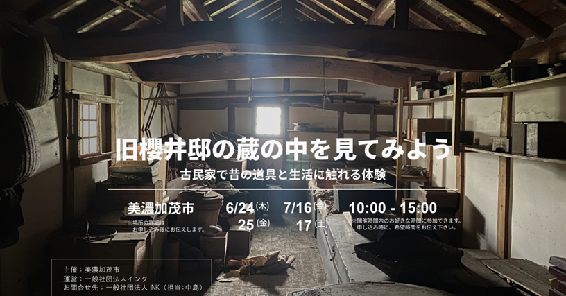 今後の利活用宣伝のため、一般の方を対象とした「蔵の中を見てみよう〜古民家で昔の道具と生活に触れる体験」ワークショップを計画した。