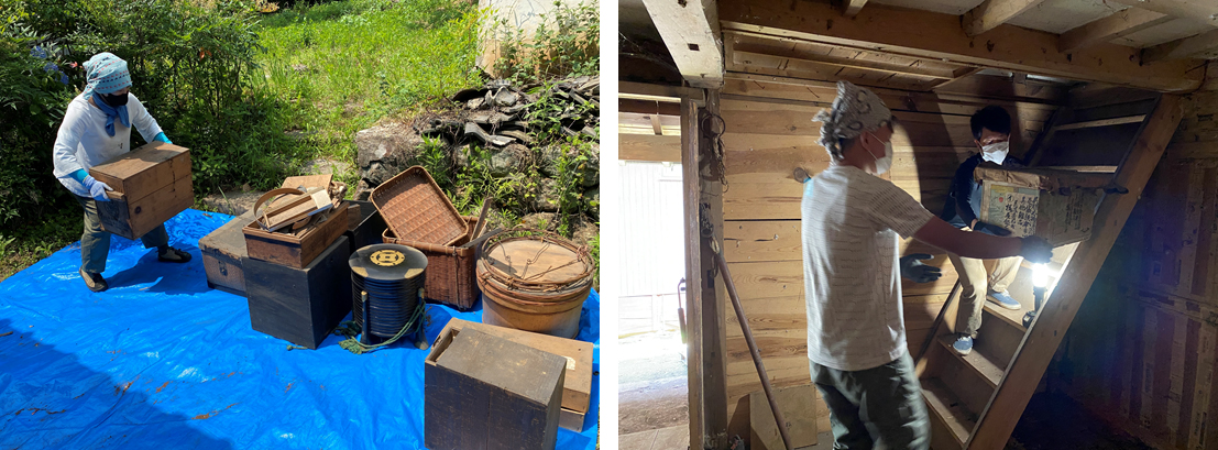 お掃除ワークショップ(残置物の整理)では、蔵①にあった荷物を整理する事が出来た。参加者は古い道具や器が好きな方が多く、貴重な品に触れる事で喜んでいただいた。