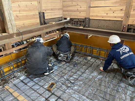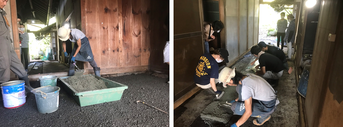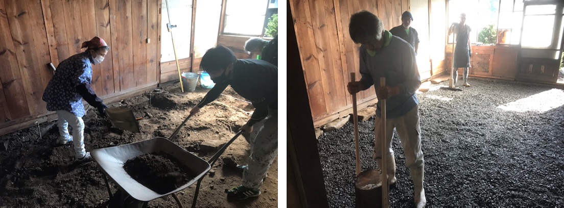 一般の方に参加していただき、母屋の土間打ちの工事を行った。