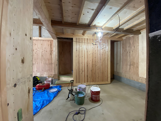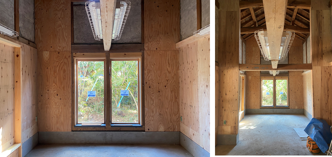 内部は構造用合板仕上げとした。後に、必要に応じた仕上が可能。