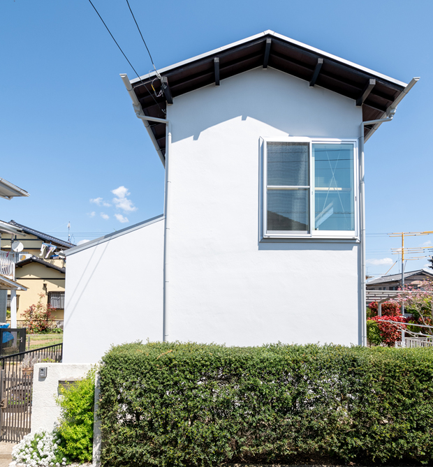 外観 大きな庇の上には採光用の窓がありLDKの奥まで陽が⼊る