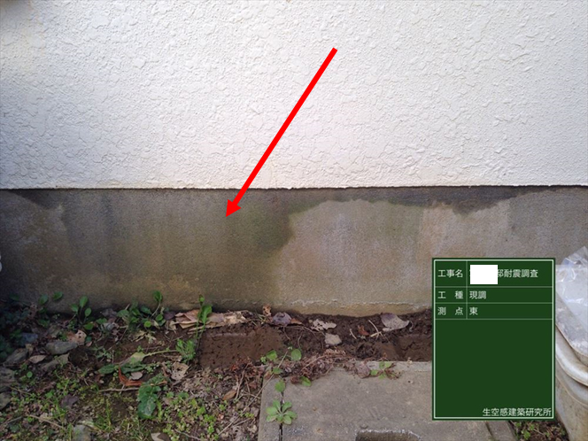 1・2階とも室内での雨浸み等は確認できなかったが、DKの床下点検口から覗くかぎり漏水の可能性がある。浴室壁面や床面にひび割れは確認できなかったが、外部基礎コンクリートに雨染みが確認できた。