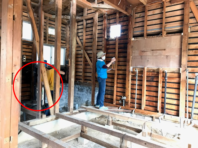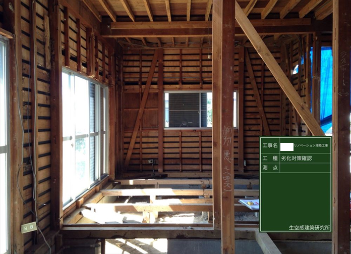リノベーション前提での建物調査は、小屋裏および床下、外観や設備機器などについては目視調査を実施。