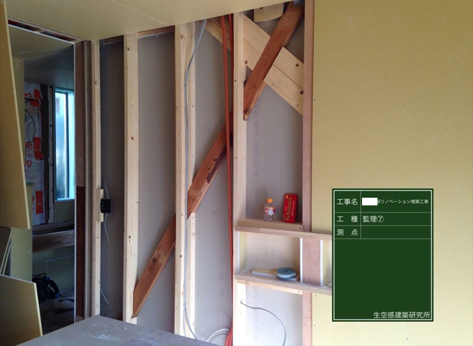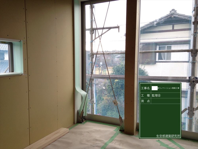 改修工事では、C値 2.0未満になる施工を意識して設計を行い気密測定実施を標準とし、断熱性能は等級5以上を目指すことで改修後の不動産価値を上げています。