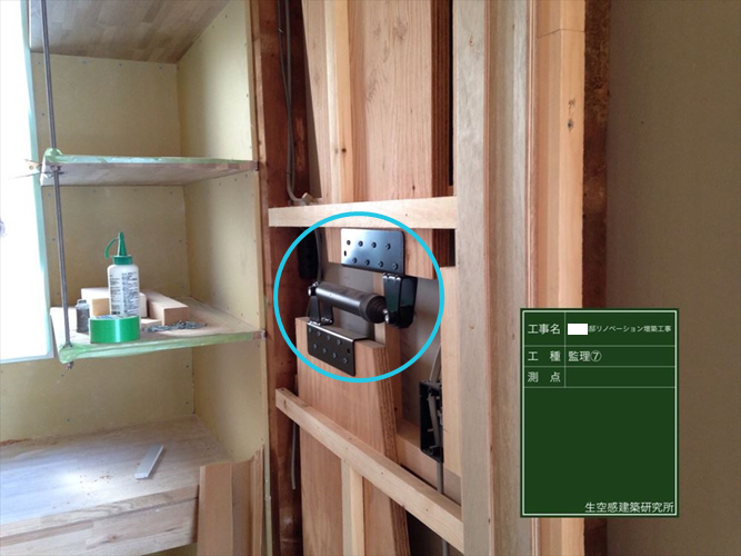 既存筋交いも残し併⽤しているが、筋かい⾦物補強を⾏っている。