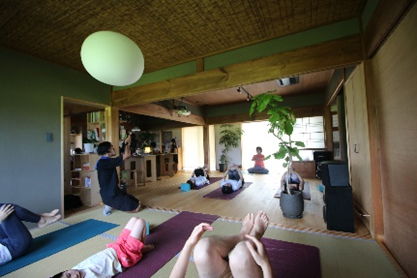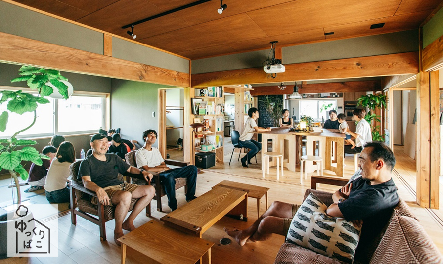 令和元年9月に中古住宅付き土地を入手。冠婚葬祭まで家で対応できたシンプルな田の字型プランを現代にアレンジ。地域拠点『ゆっくりばこ』と名付けました。厨房スペースがあり、飲食営業と菓子製造業の許可も取得済みなので、飲食店や菓子店などを小さく始めたい人や、パン教室・料理教室などをやってみたい人のチャレンジの場としても利用可。20畳ほどのリビングスペースはヨガ教室などにも使用されています。平日の9時〜16時、1日500円でWi-Fiと電源が使えるコワーキングスペースとしてもオープンしています。